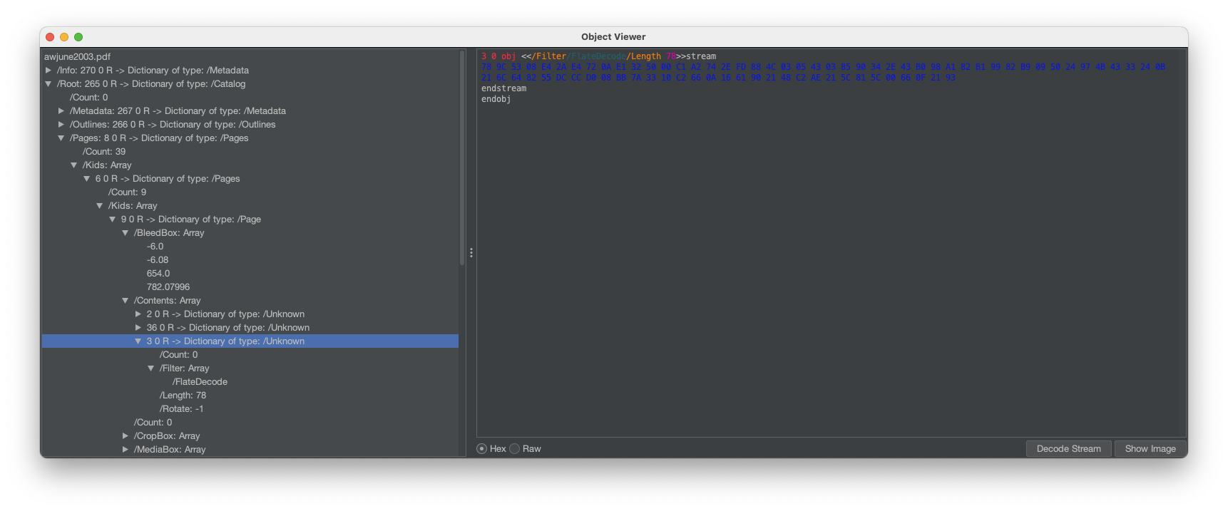 The JPedal Inspector allows you to inspect the COS object tree of a PDF file