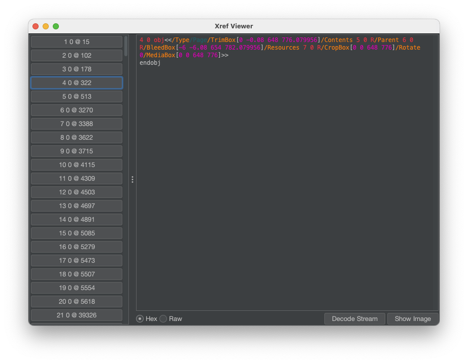 The JPedal Inspector allows you to view the XRef table entries and their objects