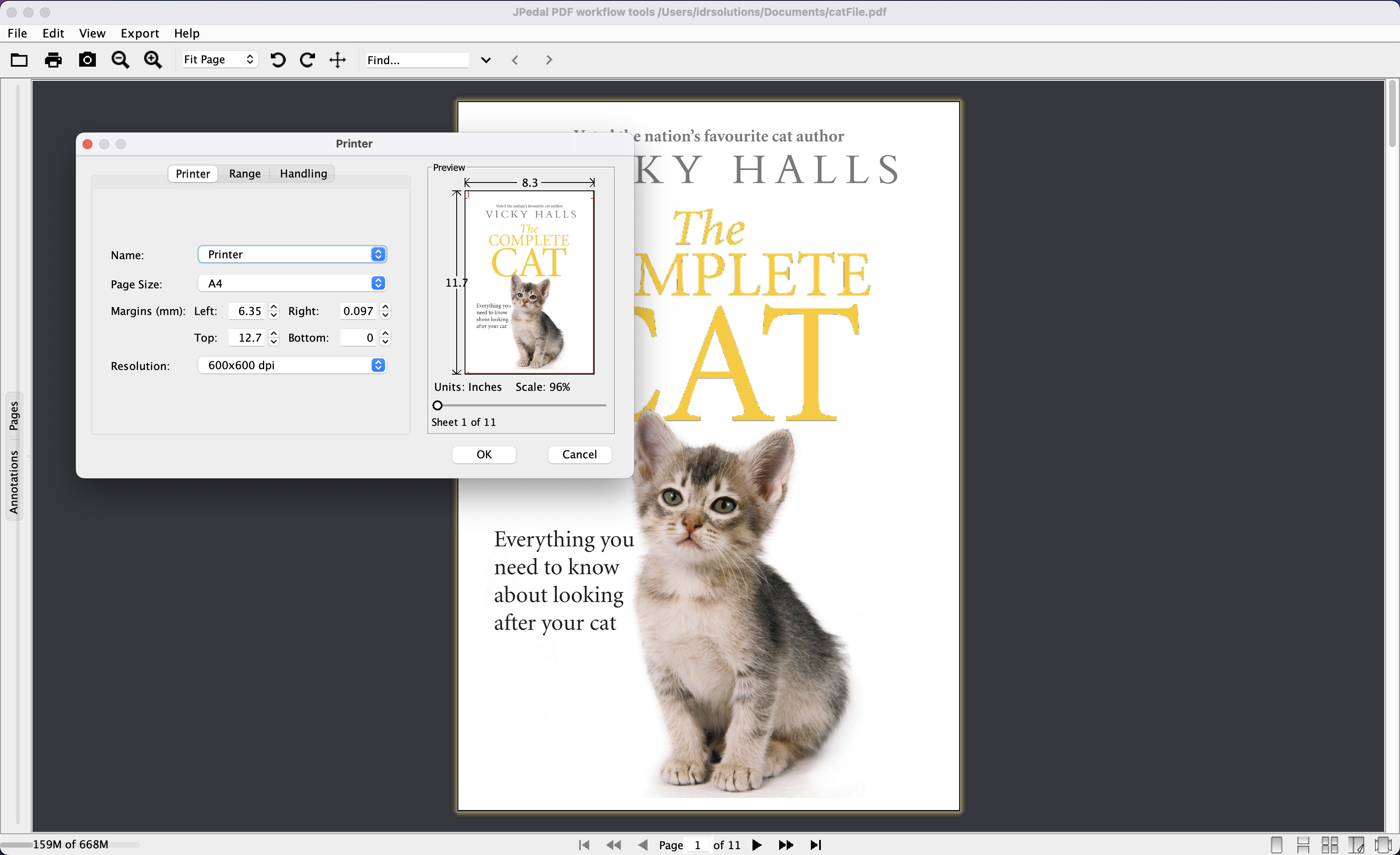 - Specify the scaling, page margins and resolution